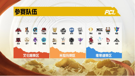 艾伦格赛区:NH战队,17战队,PeRo战队,Tyloo战队,XLG战队,GFY战队,HQ战队,WCG战队;